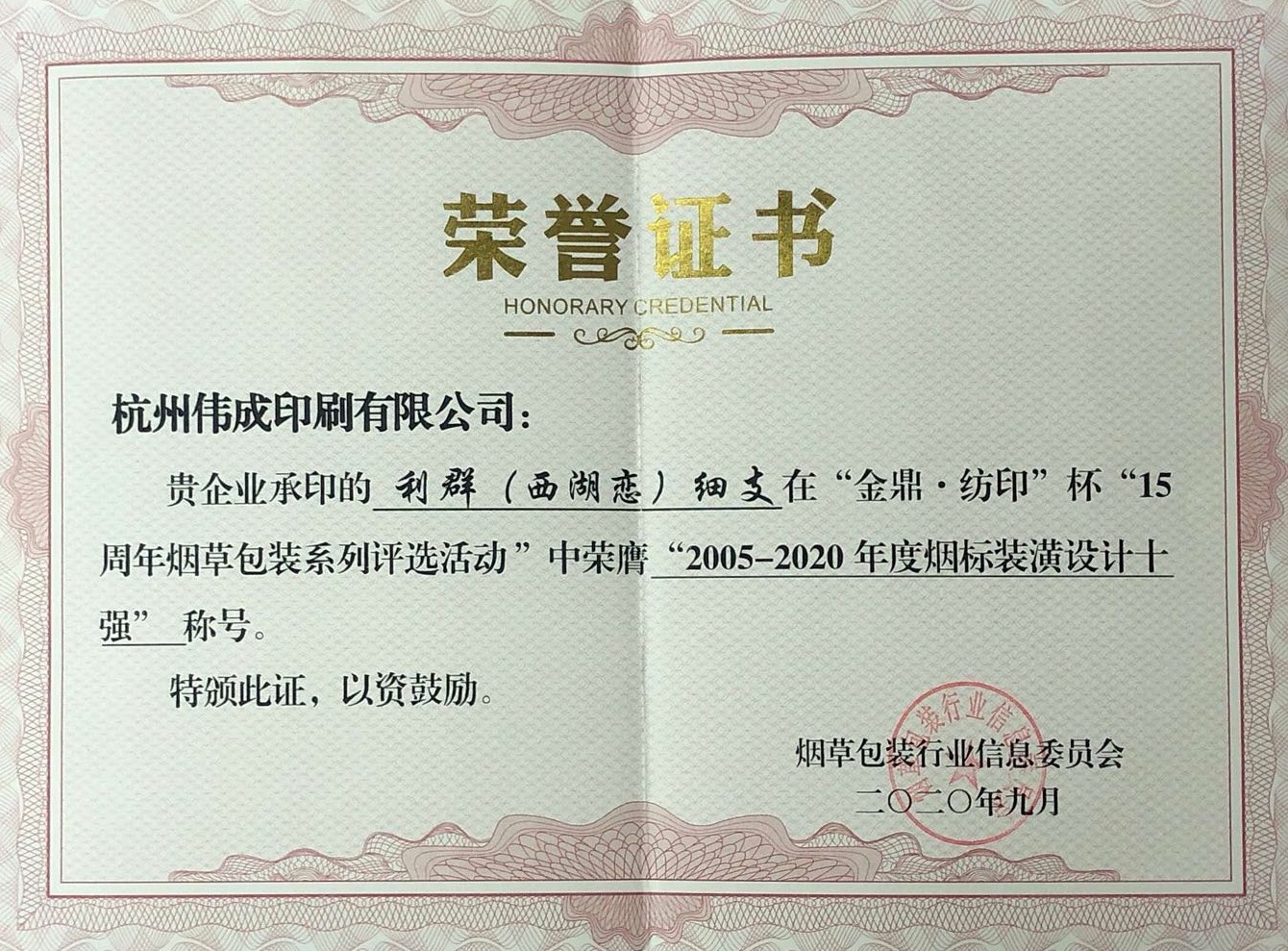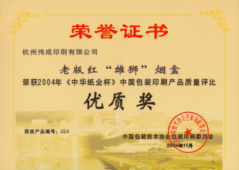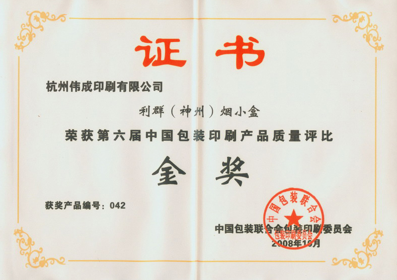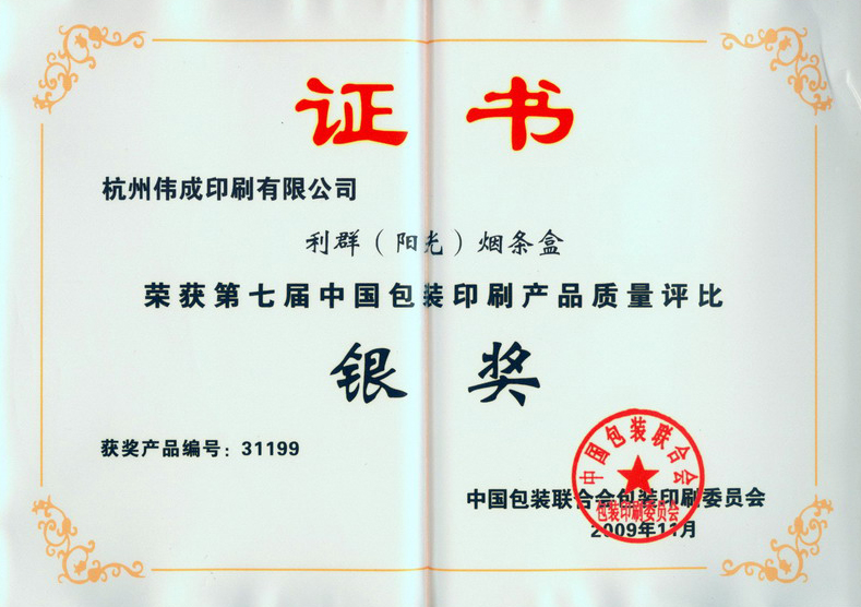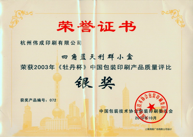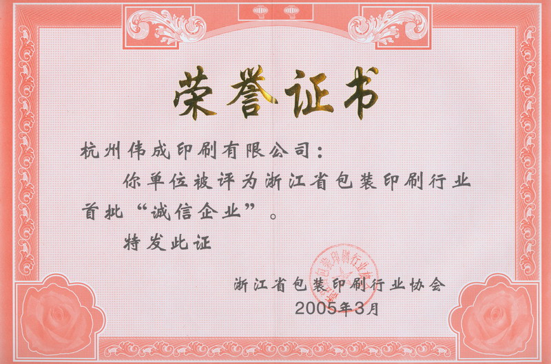浙江省包装印刷行业首批“诚信企业”