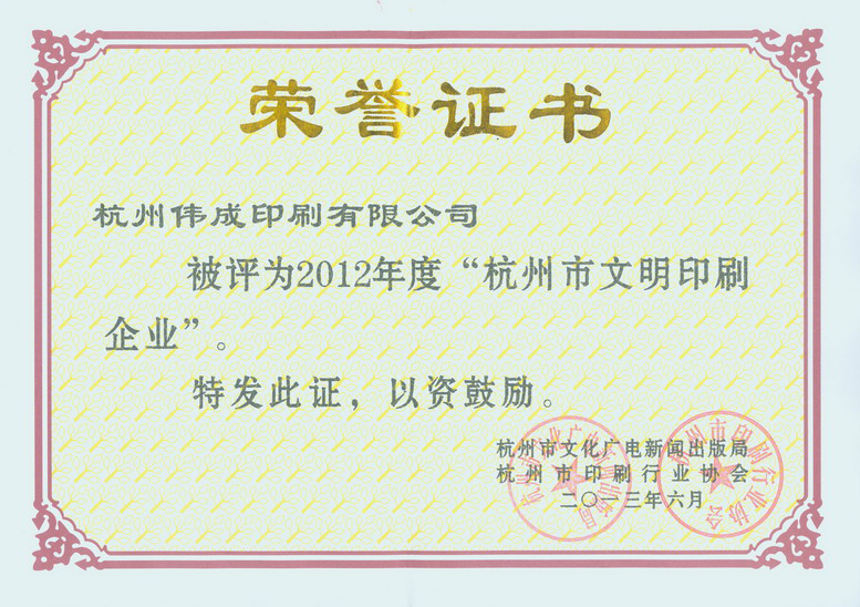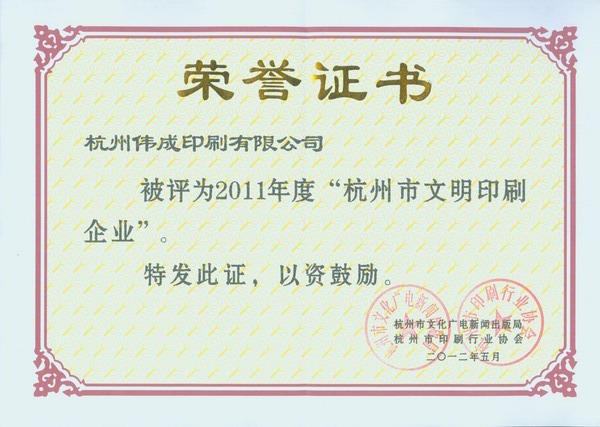 杭州市文明印刷企业2011