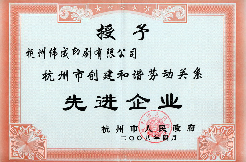 杭州市创建和谐劳动关系先进企业2008