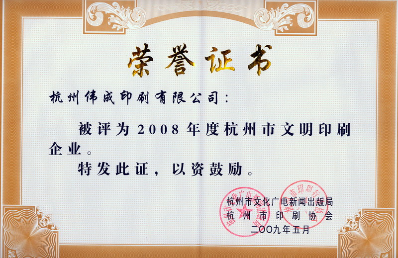 杭州市文明印刷企业2008