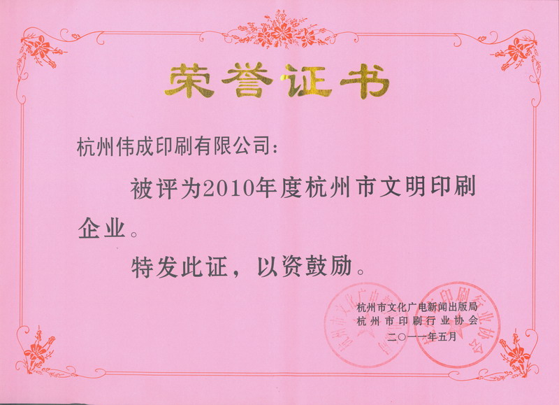 杭州市文明印刷企业2010