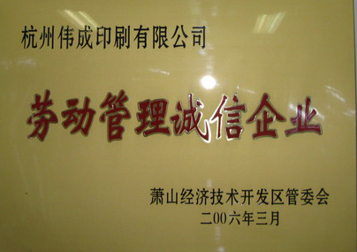 萧山开发区劳动管理诚信企业2006